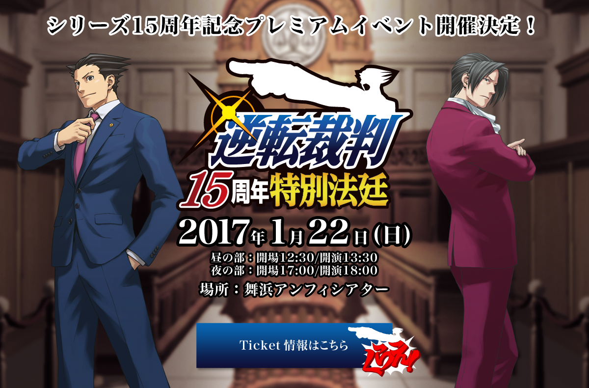 - 2017年1月22日(日)「逆転裁判 15周年 特別法廷」開催決定!